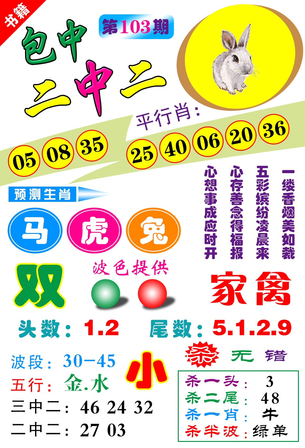 | 103期※双波中特※‖蓝波红波‖12羊准 |